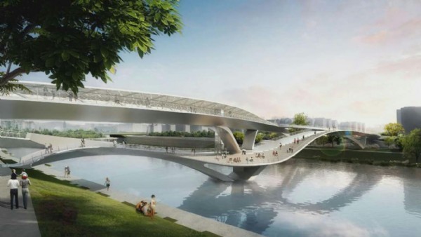 建設地點:五岔子大橋建設地點為成都市高新區(qū)南部園區(qū)府河沿線,沿公濟橋路東西方向走向,與府河正交,位于新會展中心以東,橫跨錦江,西連紅星路南沿線,接入江灘公園,向東跨越熊家橋路,連中和老城區(qū)。